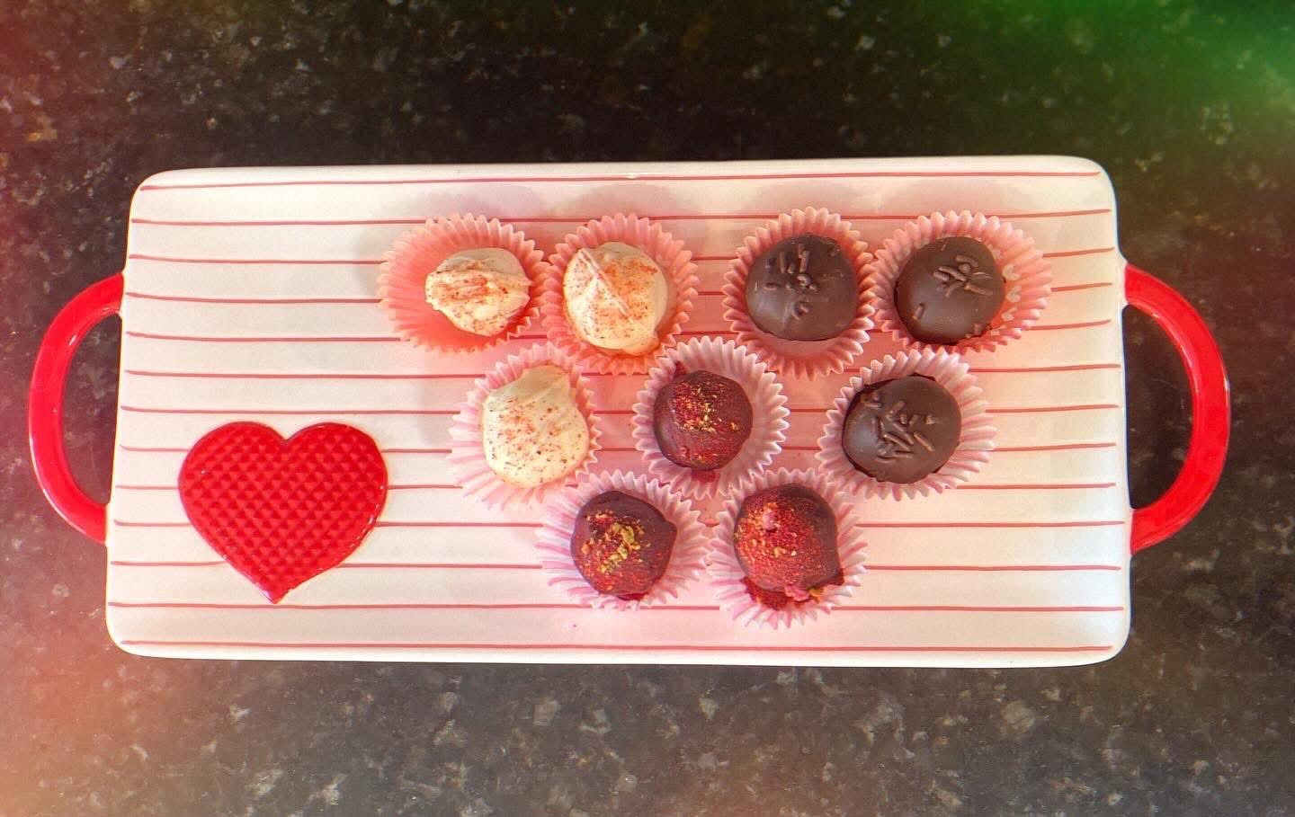 Share a delicious pack of hand made truffles with your love. Each pack will come with a total of nine truffles, three Raspberry Dark Chocolate, three Milk Chocolate, and three Strawberry White Chocolate. Perfect to share; or not.